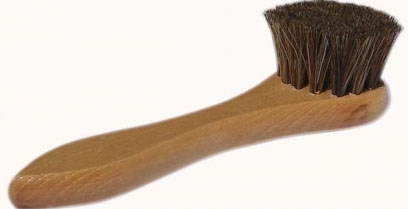 Ξύλινη βούρτσα χειρός σε κομψό χρώμα καρυδιού. Ανοιχτό γκρι ή μαύρες τρίχες αλόγου.